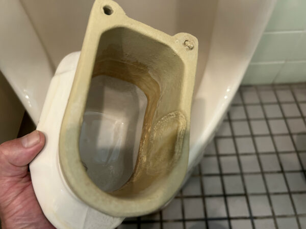 ここからは男子トイレ尿石落としの画像になるので、見たくない場合はここでおやめください。