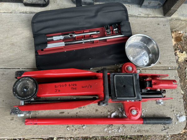 青森にいたときにガレージジャッキを使い始めて以来、車に付属のジャッキに戻れなくなりました。20年以上使ってオイル漏れが防げなくなり、モノタロウで新調。当てゴムもあったのですが、車体に貼りついているのに気付かず試運転に行ってどこかに落としてしまいました。