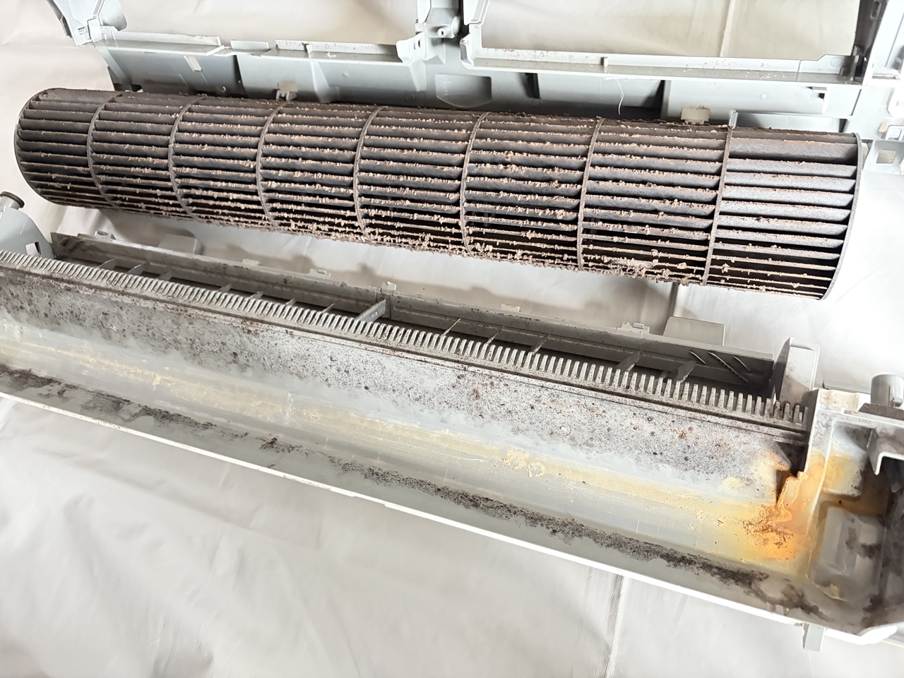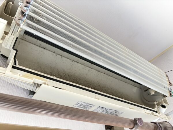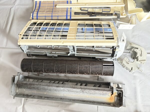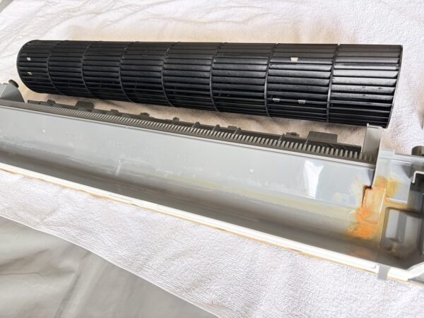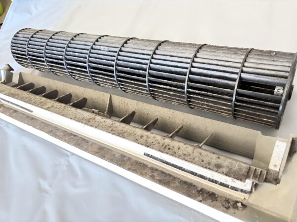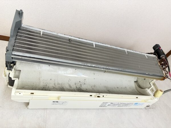 熱交換器と壁側ボディ。ファンから汚れが飛び始めています。