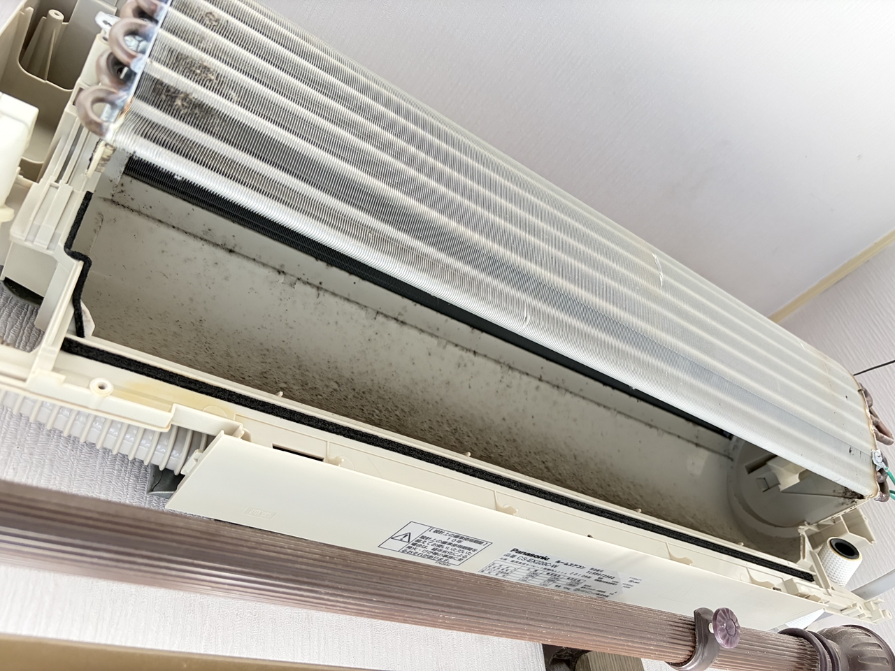 パナソニックが先になり、21(火)午後にクリーニングしました。型番はCS-EX220C-W、パナソニック2010年製。