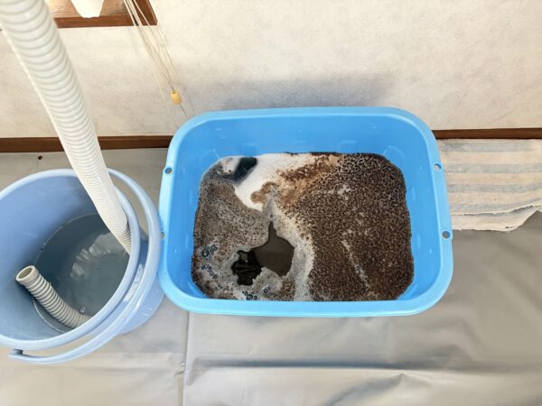 ファンの汚れが流れると、洗浄廃水がすごいことになります。