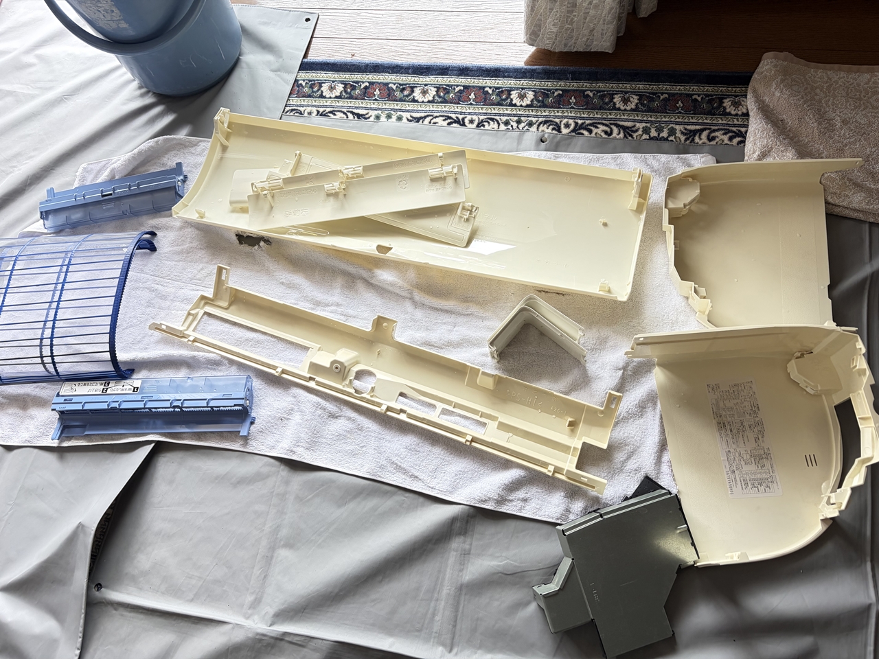 外したパーツ類。部品点数、多いです。ファンとドレンパンに寄ってみます。