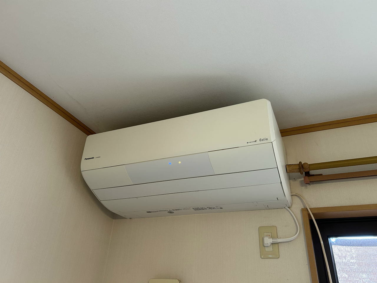 気を取り直してエアコンから。CS-X630D2-W、パナソニック2020年製。シンプルなエアコンがいいと聞いていたけれど、これしかなかったんだそうです。どのメーカーも、5.6キロエアコンまでは汎用機を用意していると思いますが、6.3キロはお掃除機能付きになりますね。