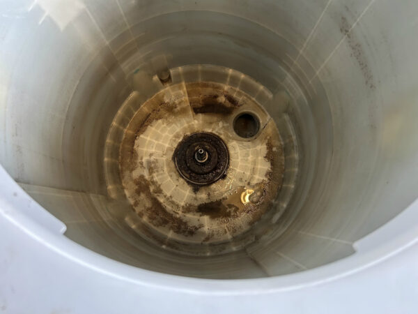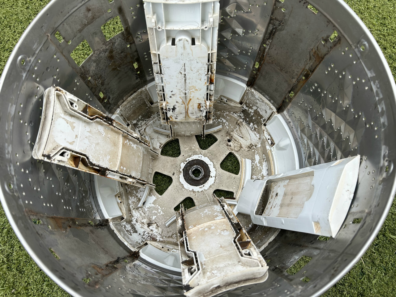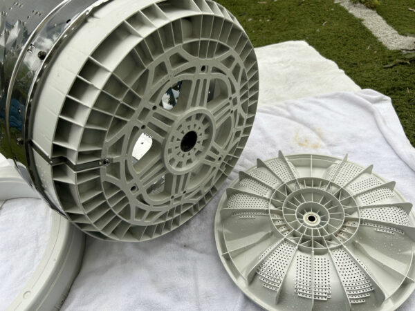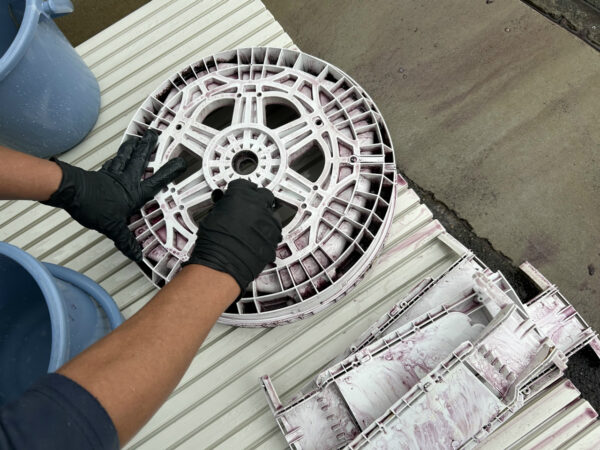脱水槽はさらに分解して行きます。内側の流水経路。見えないところはこんなに汚れています。