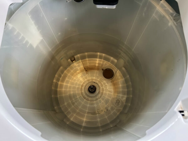 脱水槽が抜けて、Nさんに確認していただきます。「汚れているんですね」。