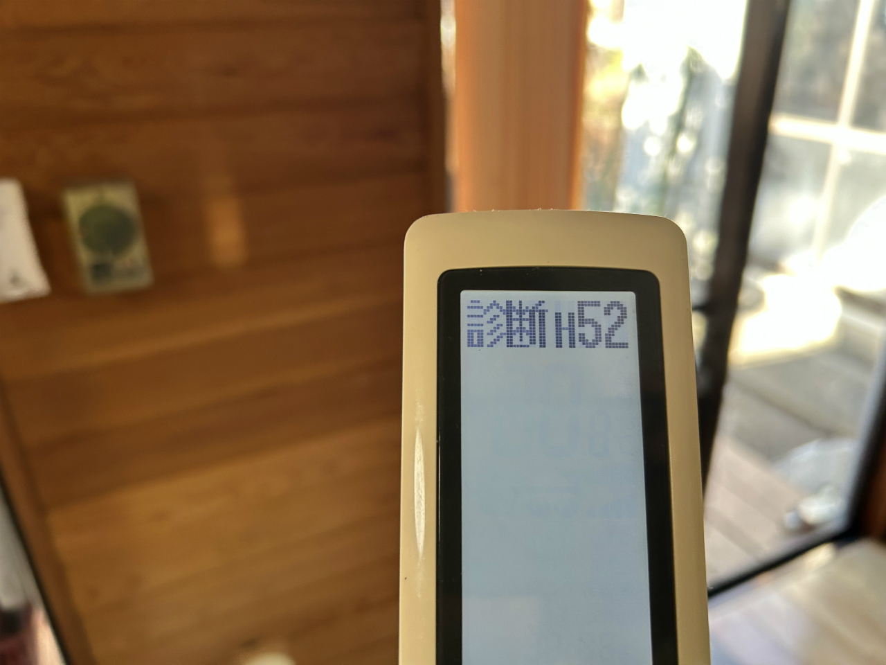 1台目がCS-XS287C-W、タイマーランプ点滅中。たぶんフィルター掃除の異常だと思います。お知らせを押すとH52。お掃除が終わって、しっかり組み立てれば直るかもしれません。