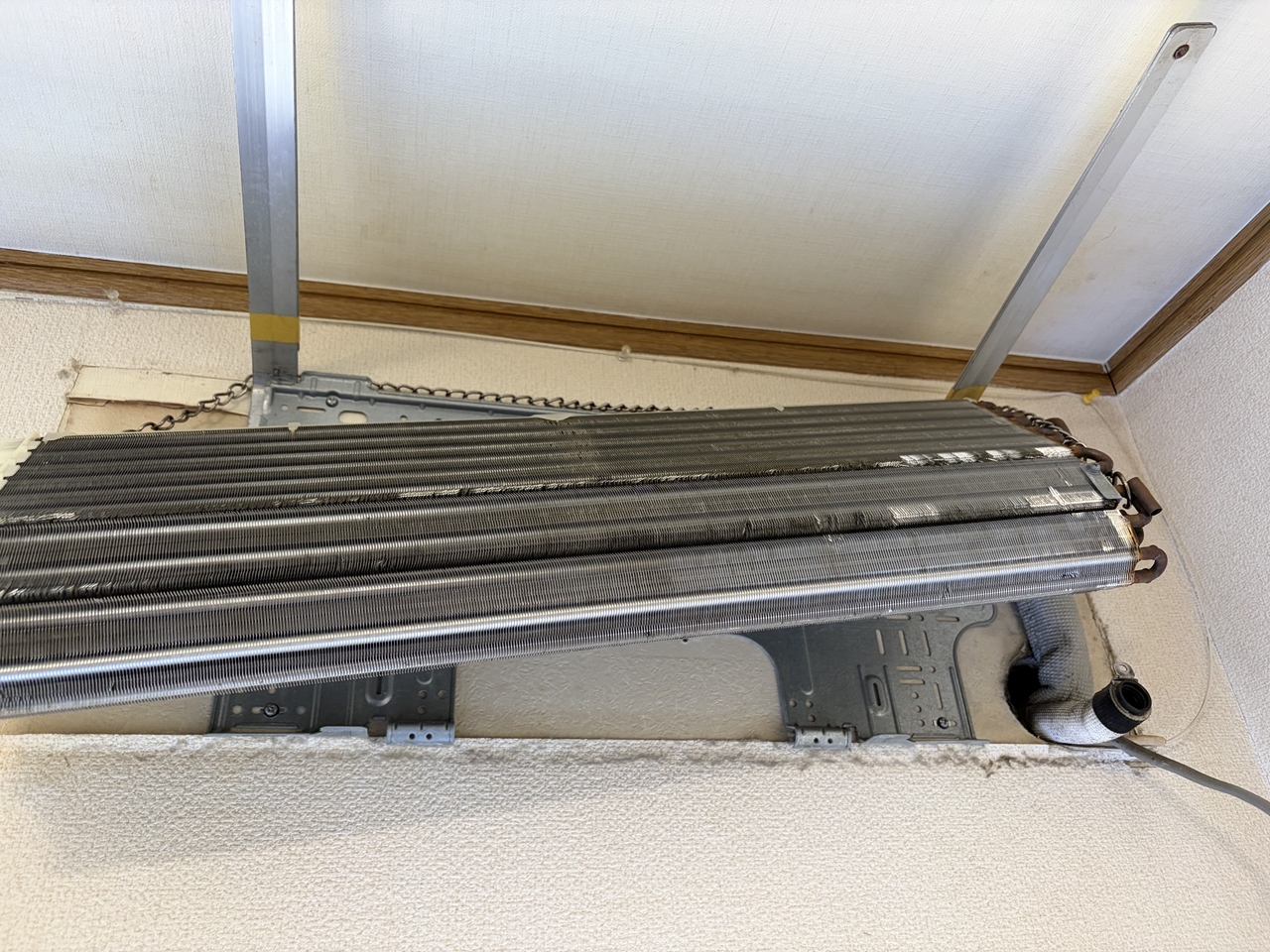 熱交換器はきれいで、ファンから飛んだものが周りを汚しています。