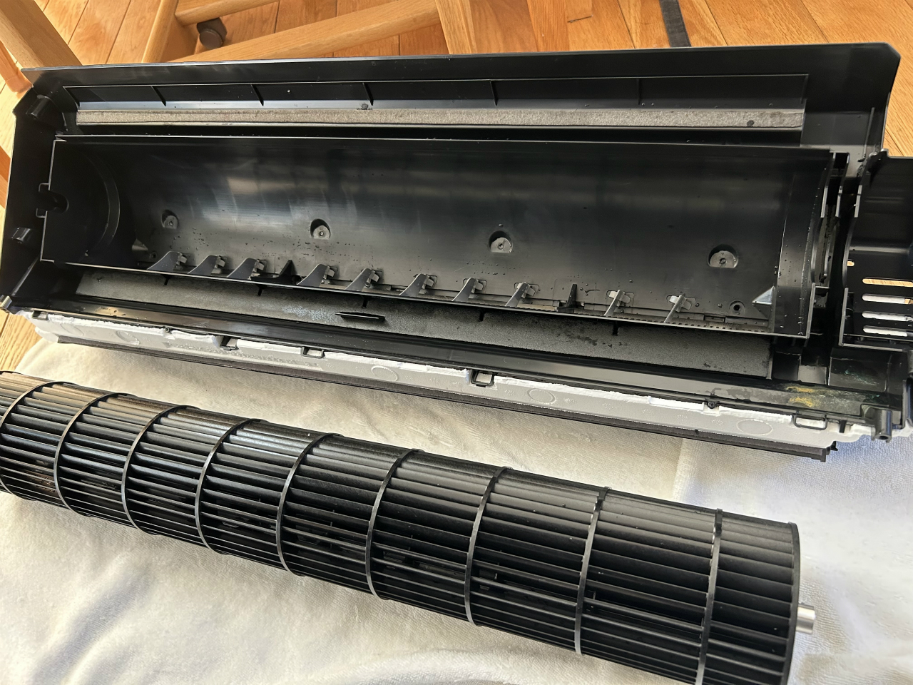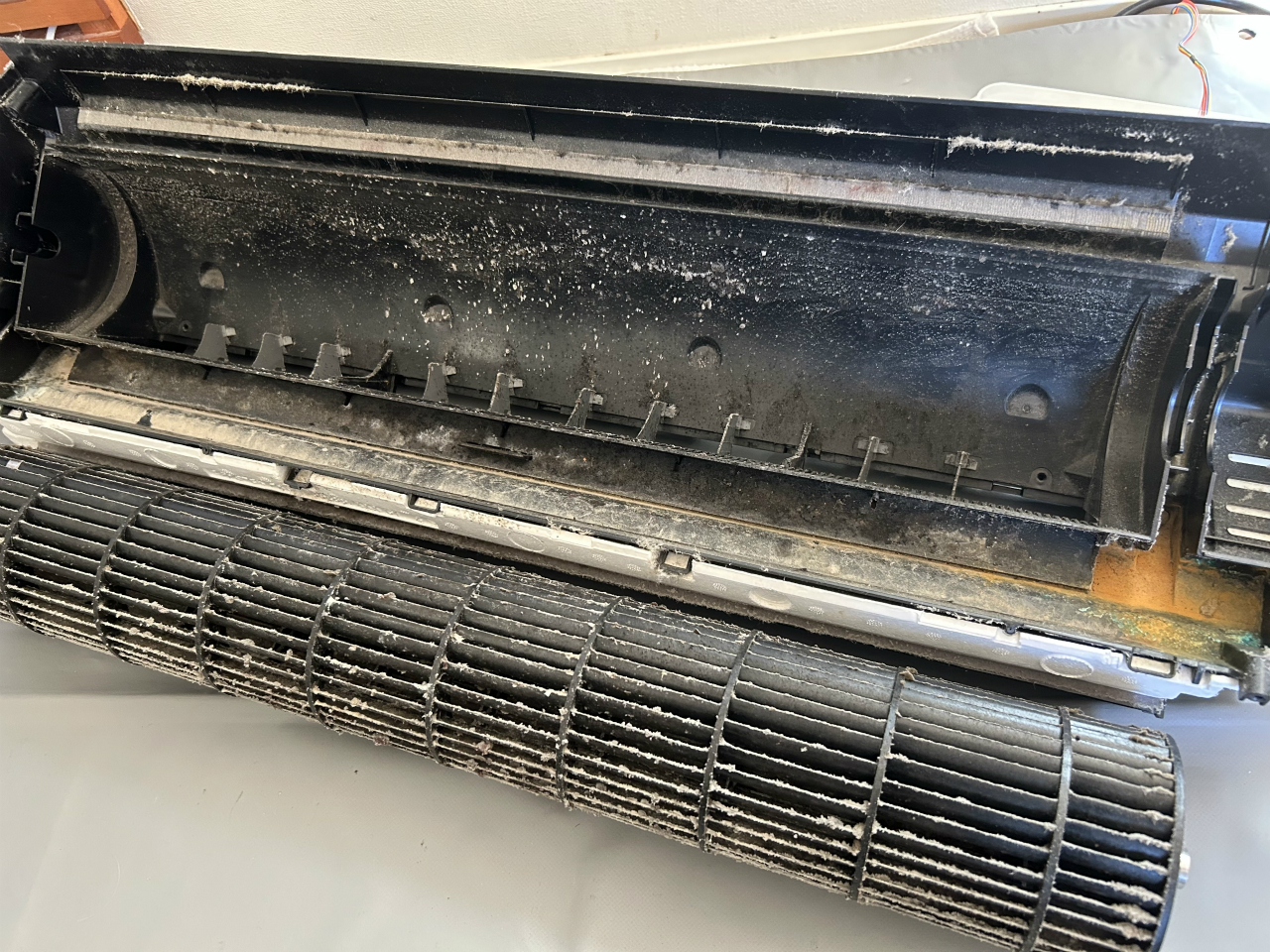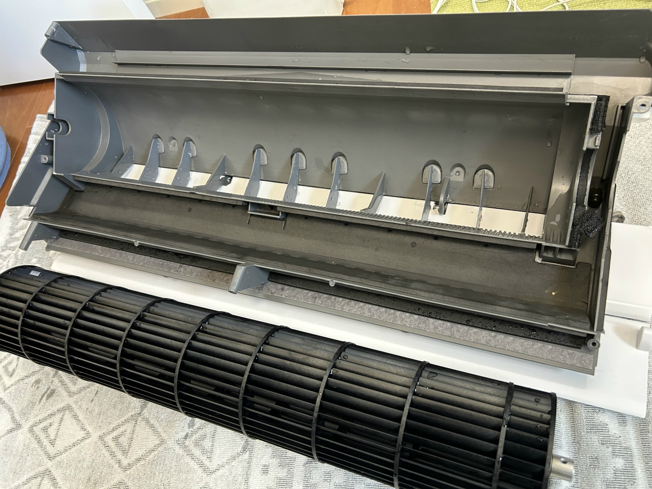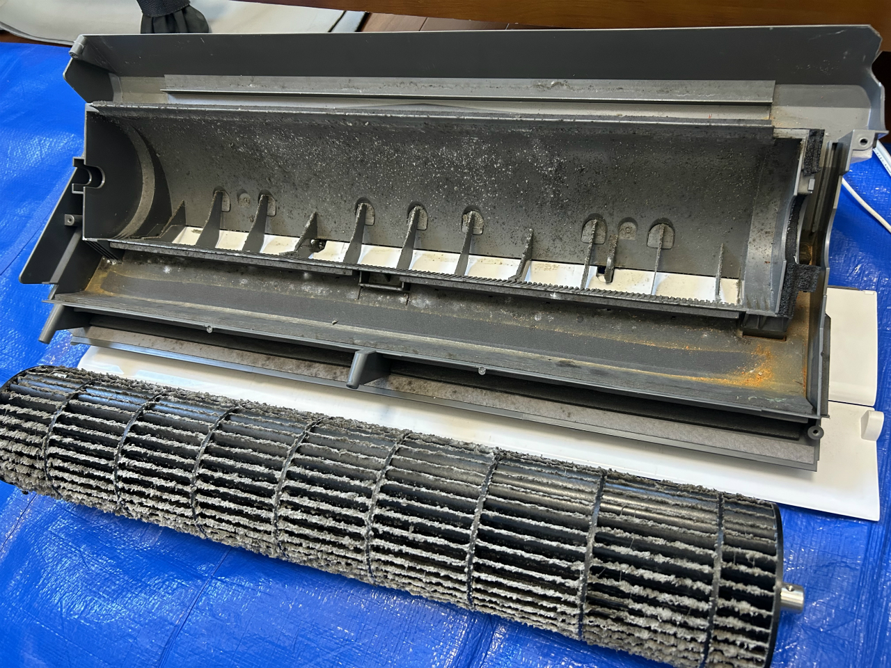 洗った順に、脱衣所設置のAS-A227H-W、2017年製、リビング設置の同じ型、2階子ども室設置のAS-C22J-W、2019年製です。僕としては脱衣所の分は手間がかかるので、最初に済ませたいと思い、お願いしてそこから始めました。