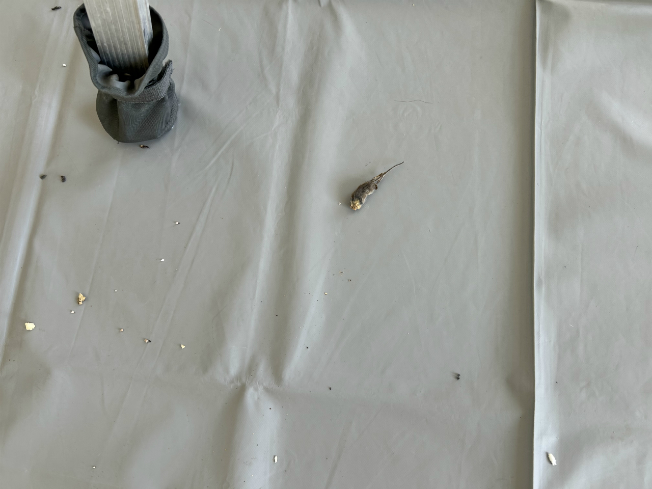 基板のふたを外した時点からかなりいろいろ振ってきたのですが、ドレンパンを外したときに小さな主が落ちてきました。天井裏を確認したところ、活動範囲はエアコン付近に限られていた様子です。