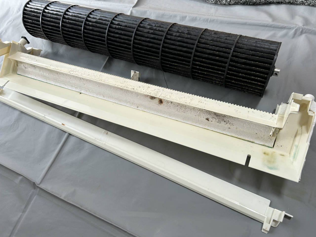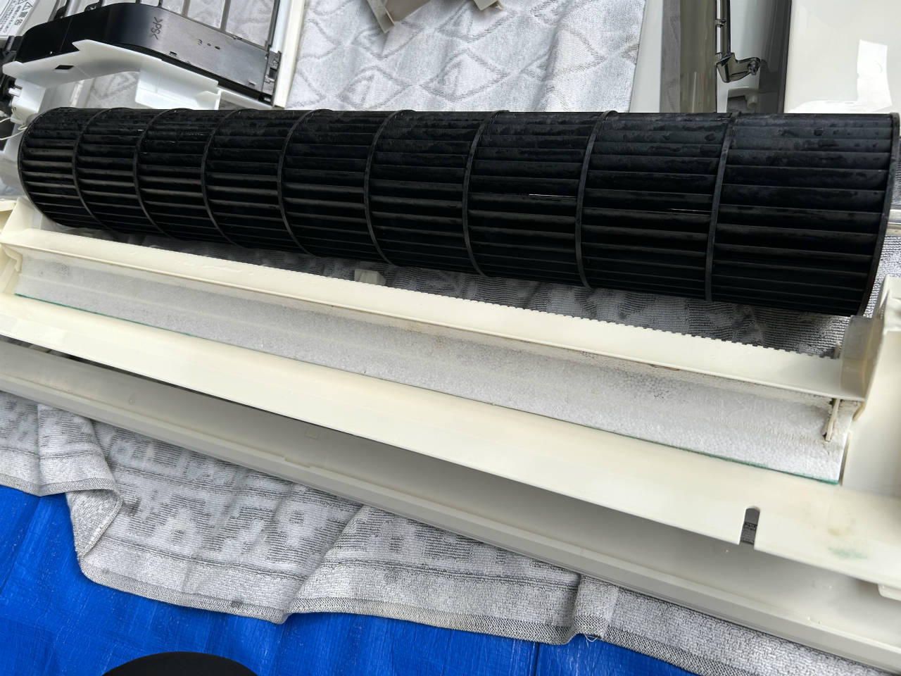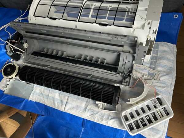 2日目は2階メインです。寝室設置のCS-HX405C2-W、パナソニック2014年製。この分が設置された次の年から、毎年洗っています。