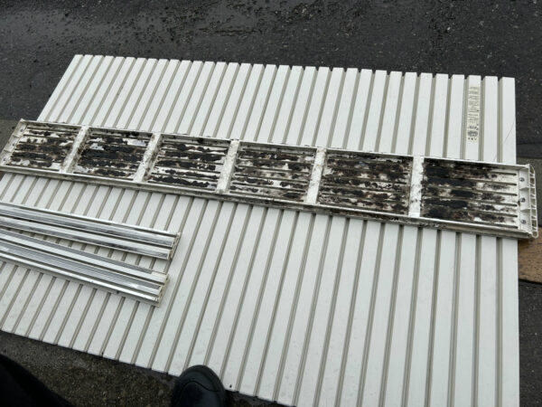 エアコンパーツ洗いの合間に、弟が1階トイレ、滑り出し窓や網戸、照明器具、扇風機など細かいものをお手入れしています。こまごましたものですが、意外に手がかかる部分。Wさんにも好評です。