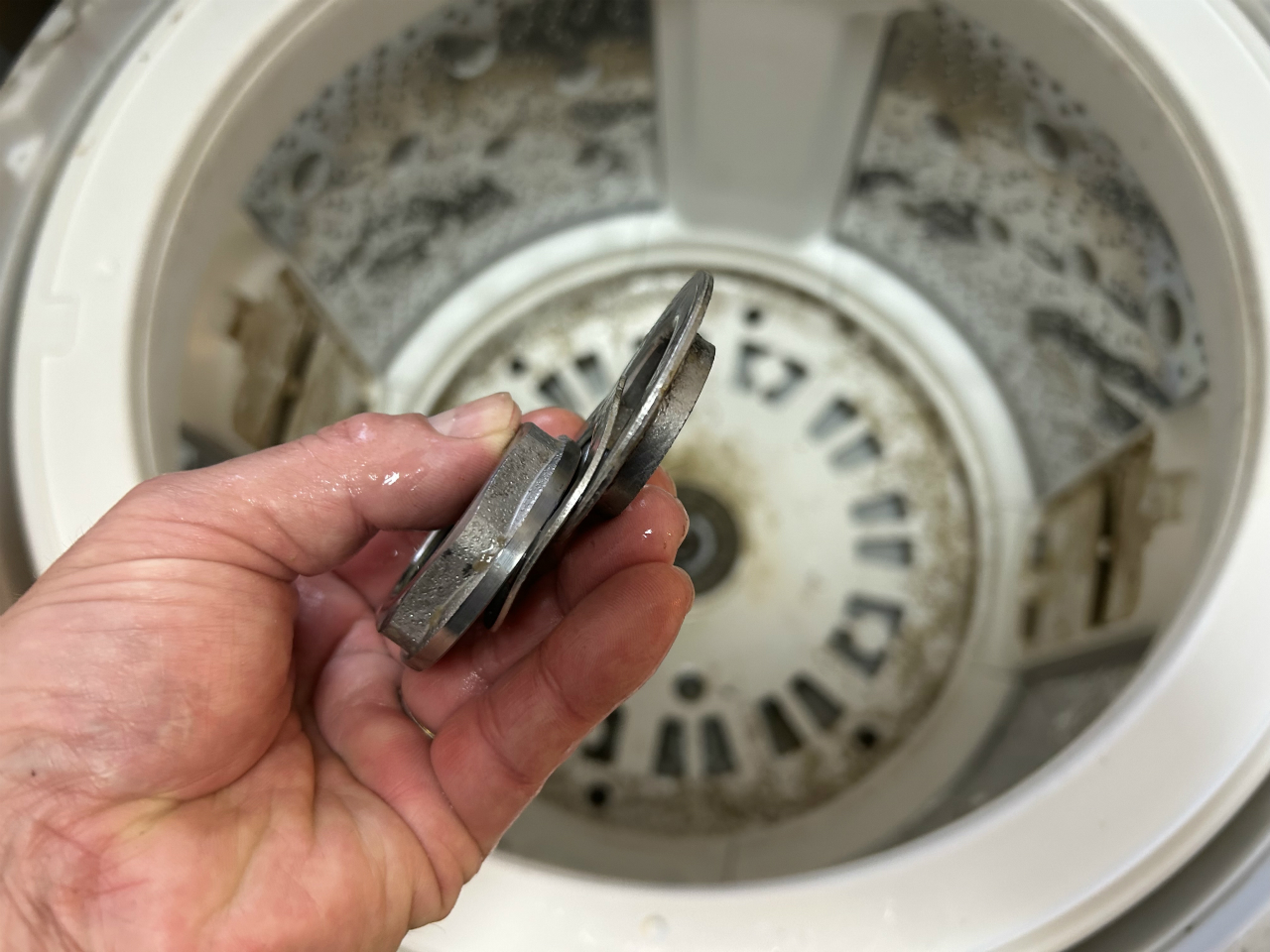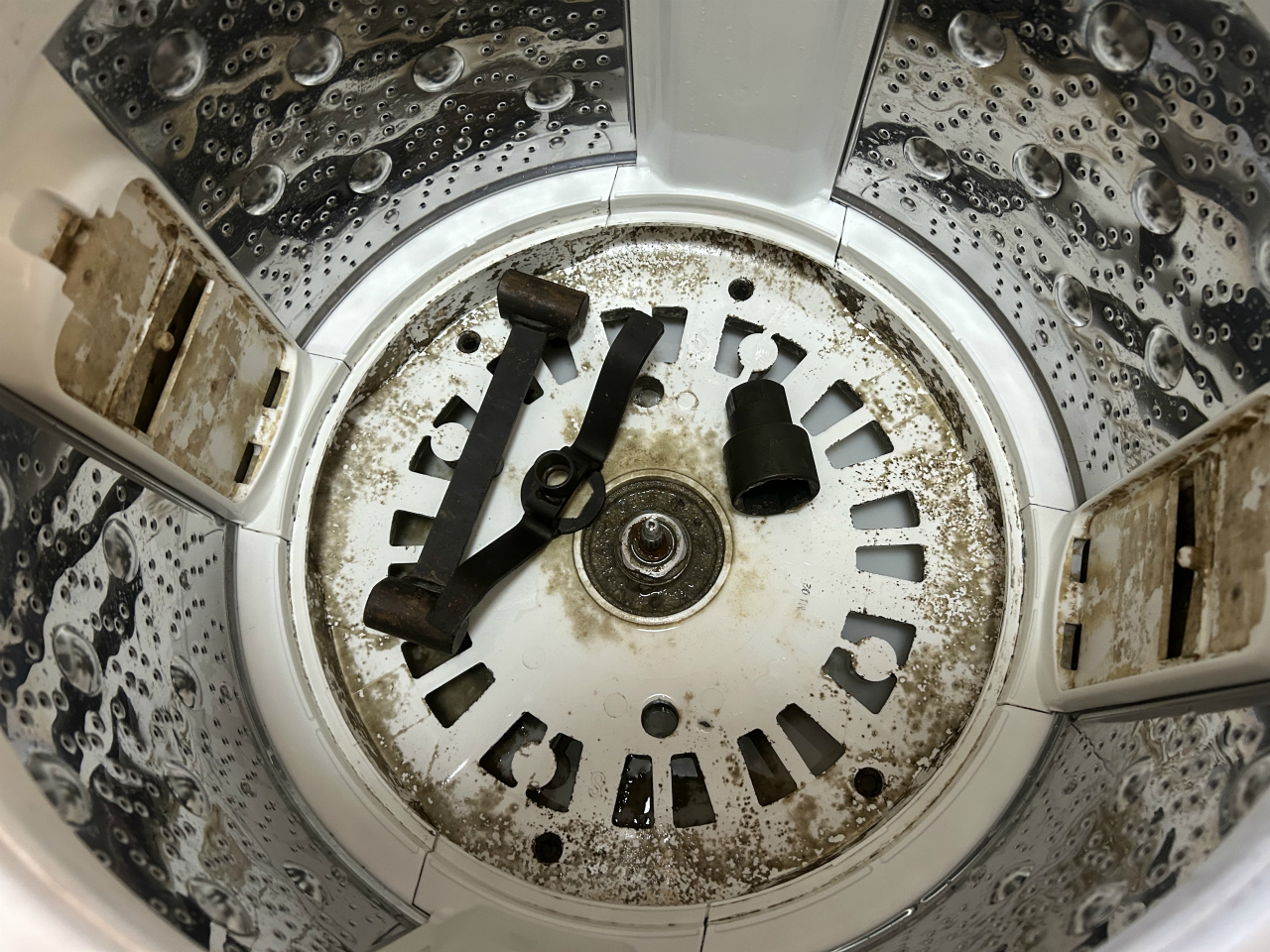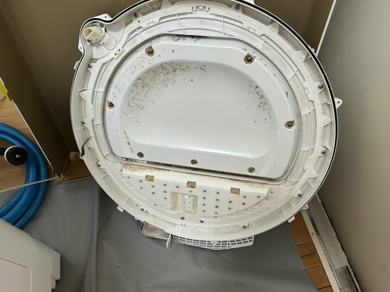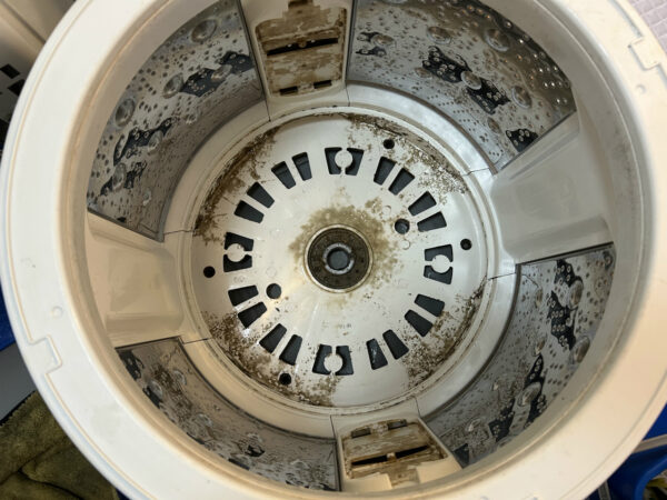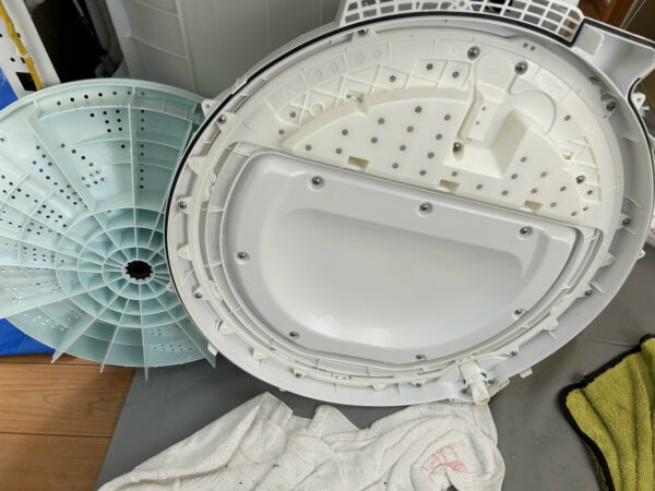 カビが硬くなる暇がないほど使われているようで、汚れ落ちは良かったです。脱水槽の外側と底円盤。