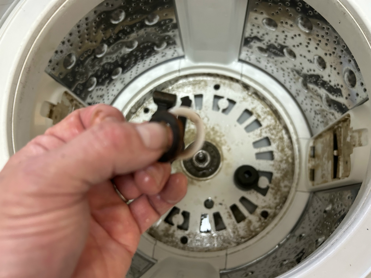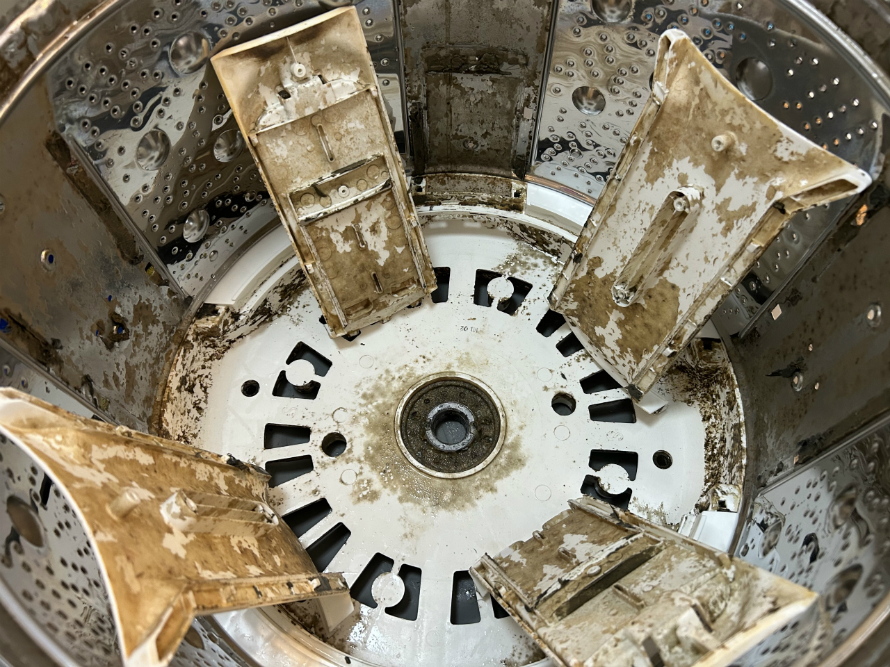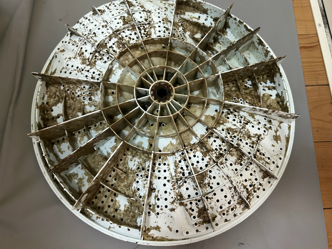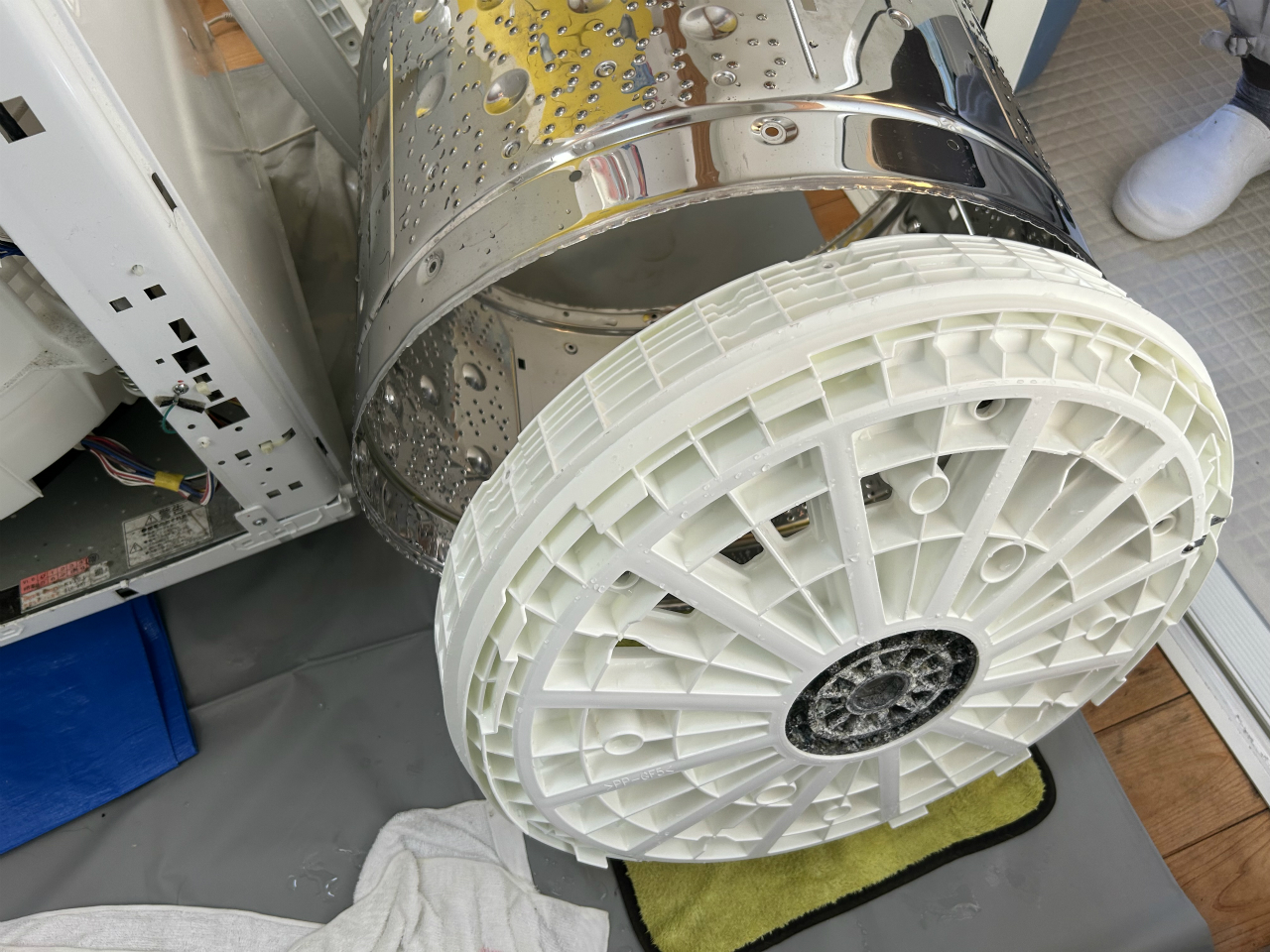 カビが硬くなる暇がないほど使われているようで、汚れ落ちは良かったです。脱水槽の外側と底円盤。