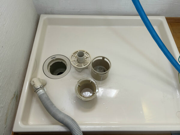 普段洗濯パンや排水溝部品は洗って漂白剤を使えばあっさりキレイになるのですが、ここは伊勢崎。シリカスケールを含んだ複合汚れがガッチガチ。酸アルカリ酸アルカリ…最後に漂白。