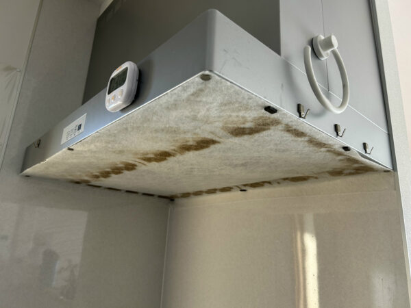 僕の方は新築以来初めてというレンジフードの分解洗浄。整流板の外側に不織布フィルタ―を貼り付けて使っていらっしゃいました。